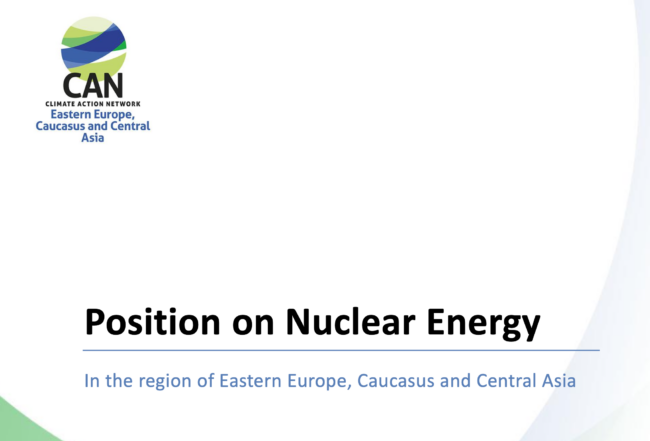 CAN EECCA considers that new nuclear power and fossil-fuel projects should be phased out and their direct and indirect subsidies withdrawn.
