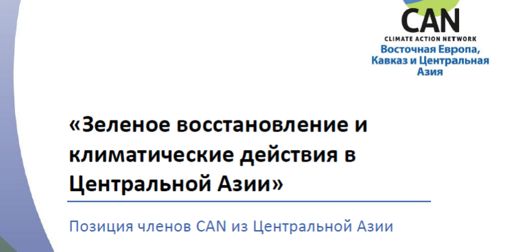 Сеть Климатический Действий в регионе Восточной Европы, Кавказа и Центральной Азии (CAN EECCA) включает более 50-ти общественных организаций и является частью глобальной коалиции более 1300 НПО. Члены CAN EECCA из Центральной Азии, после совместного обсуждения, решили выступить с общей позицией, касательно восстановления своих стран после кризиса и необходимых климатических действий.